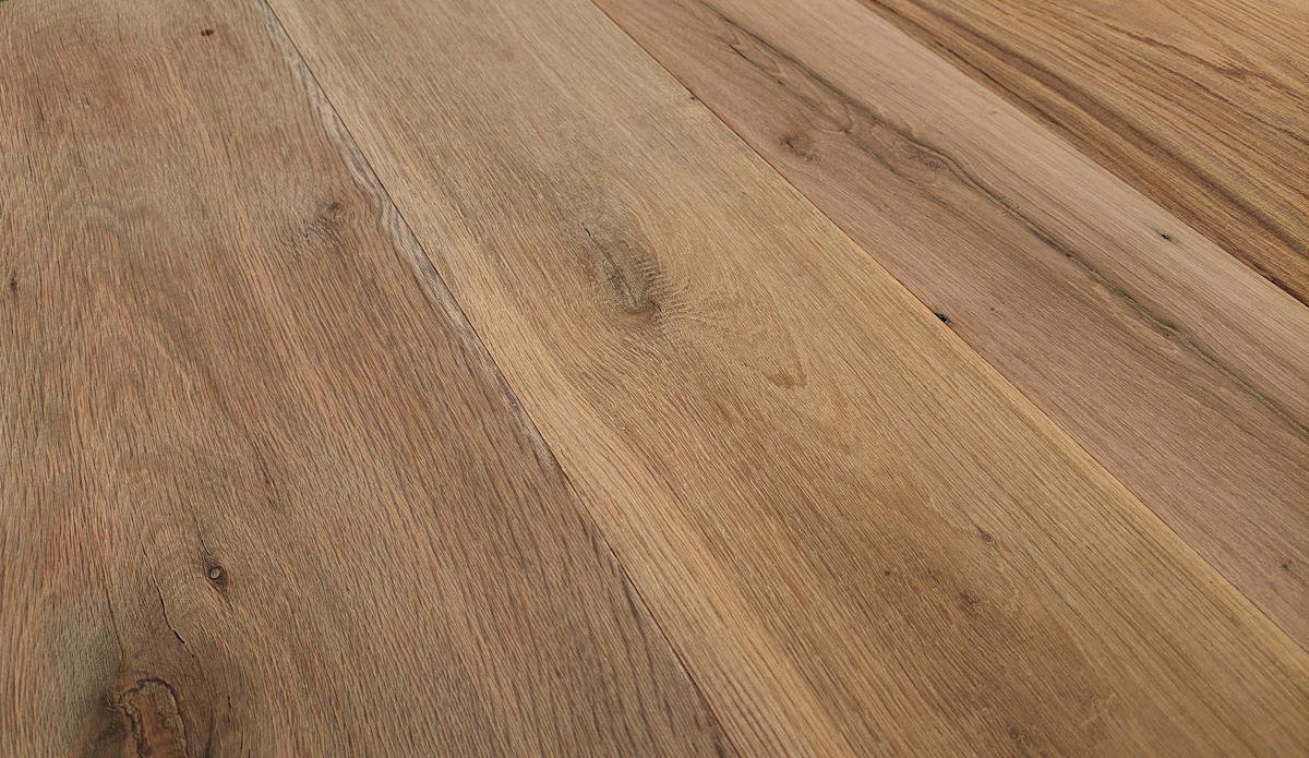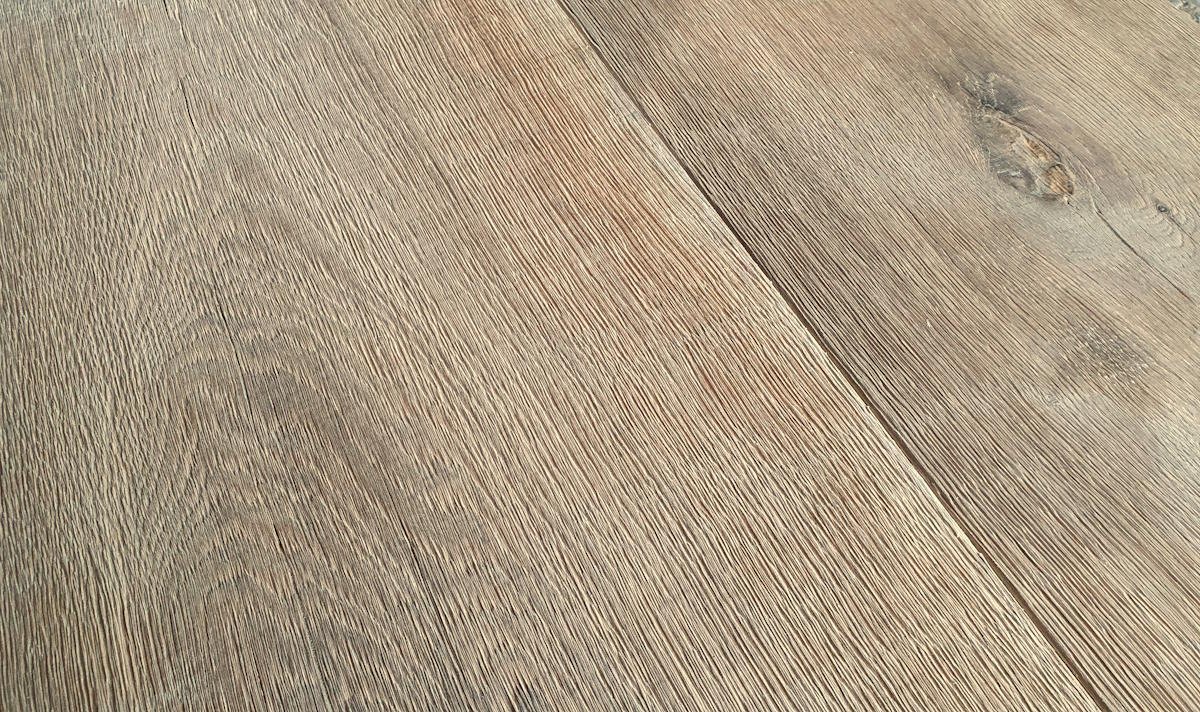 Hierbei handelt es sich um einen sehr robusten Boden erzeugt aus alten Eichenbalken. Die Oberseite der Altholzdielen sind sägerau belassen und haben daher ein schönes, rustikales Aussehen mit z.T. sichtbaren Sägespuren. Das ergibt einen auffälligen "used look", obwohl es sich um ein technisch neues Produkt handelt, erzeugt aus 100+ Jahre altem Eichenholz.