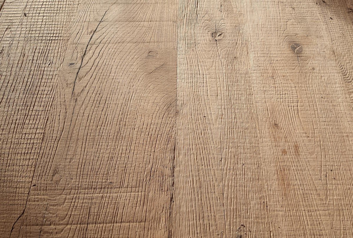Auch diese Dreischichtplatte wird aus antiken Eichenbalken erzeugt.