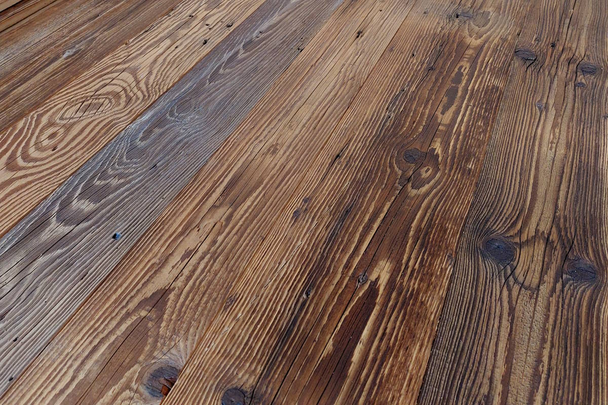 Die "sonnenverbrannten" Bretter in braun sind im Moment die beliebtesten Altholzbretter.